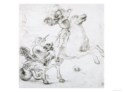 Saint george and the dragon giclee print by raphael. George and the dragon is a small painting by the italian renaissance artist raphael. Raphael was born, studied and worked in urbino, italy before moving to florence (the center for art and creativity at the time). This print is an engraving, an image made by cutting lines into the surface of a flat piece of metal, inking the plate and then transferring the ink held in the lines onto a sheet of paper. By the middle of the 16th century this panel formed a pair with raphael's st.